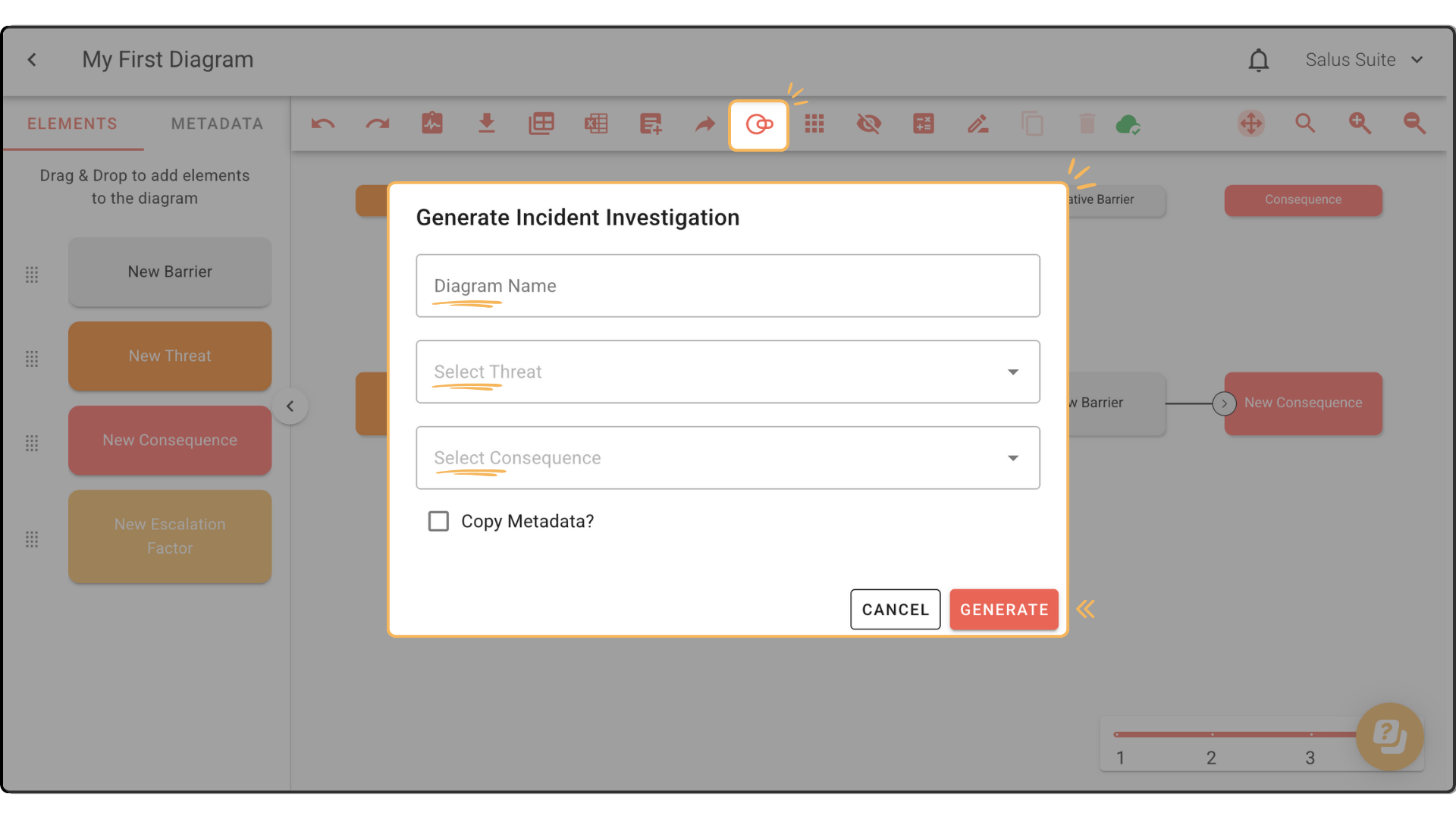 Step 2: Enter a Diagram Name. Then, select a threat and a consequence. Click Generate.