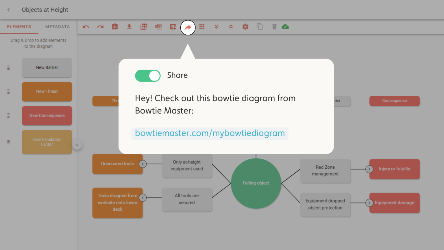 Build and share bowtie diagrams that effectively communicate every element of your risk assessment, from threats and barriers, to consequences and escalation factors.
